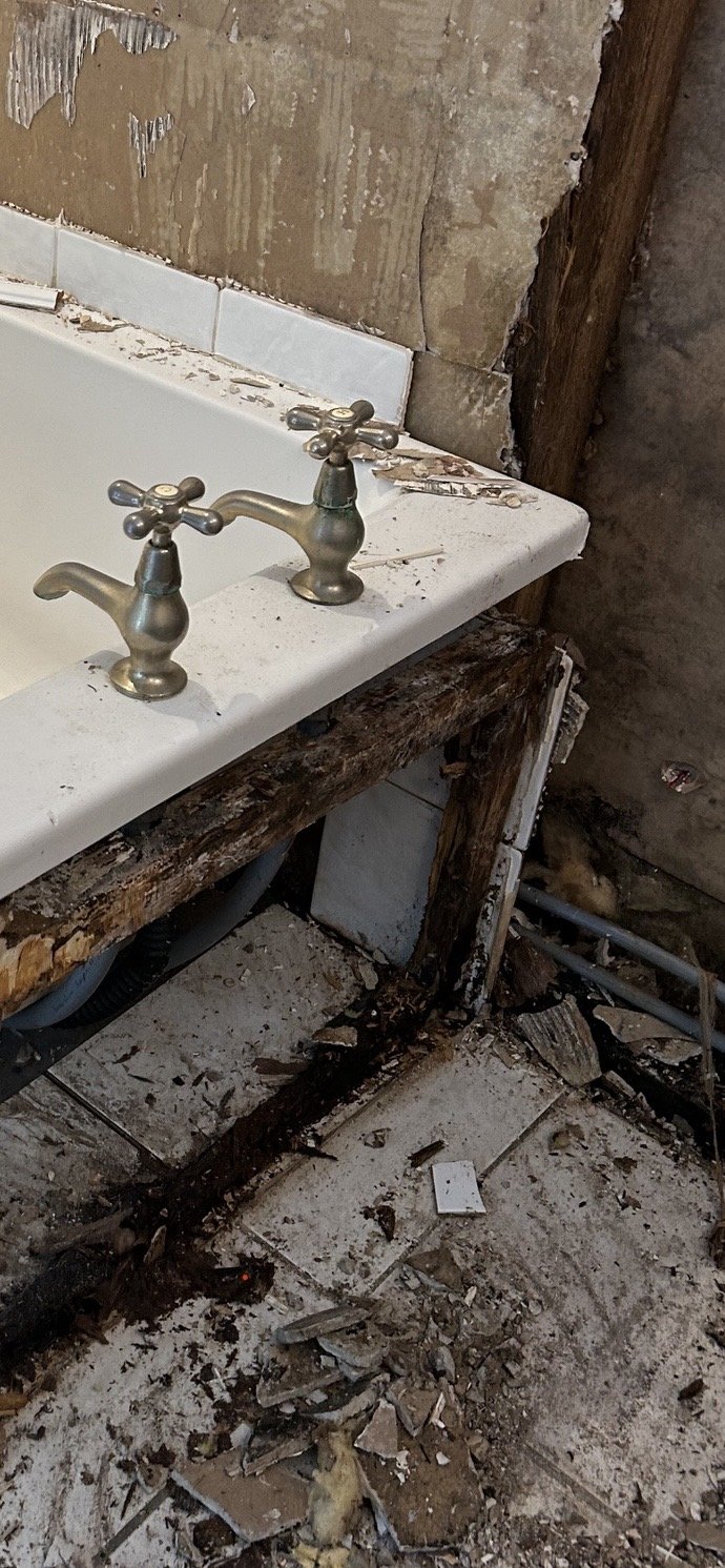 On weekend two, I was standing in one of the ancient bathrooms. The survey had mentioned significant damp in this room, but the source of the problem was unclear.